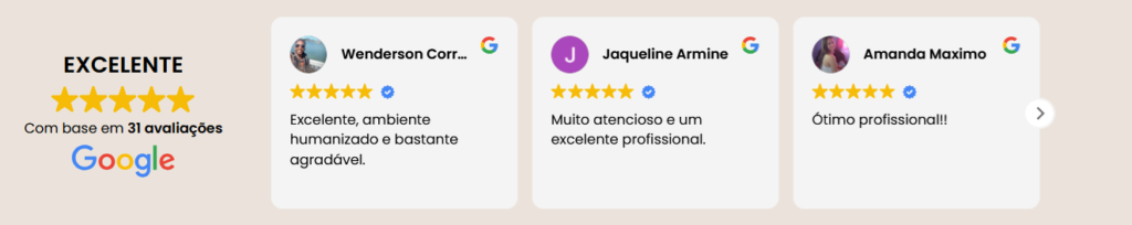 Temos muito orgulho de nossas avaliações no google e da satisfação de todos os nossos pacientes.